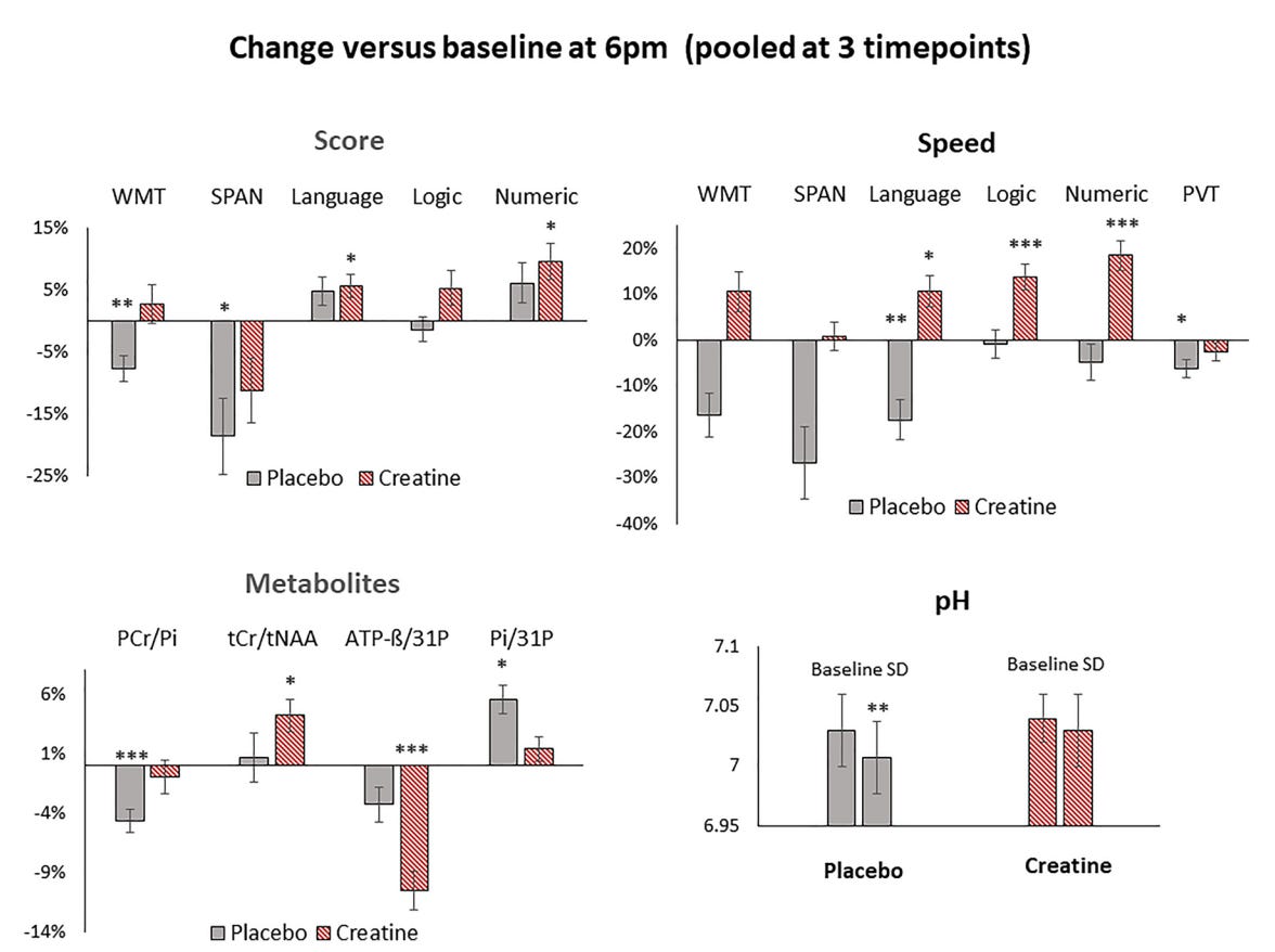 These results reinforce that creatine can help preserve executive function and cognitive stability when the brain is under extreme metabolic strain, such as during extended periods of sleep deprivation.