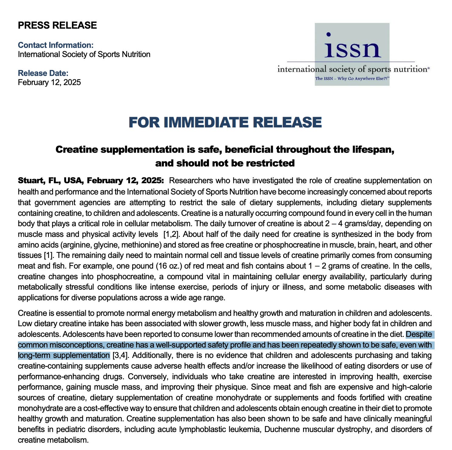 Safety Considerations: Creatine has been extensively studied and is generally safe for healthy individuals when taken as directed. The International Society of Sports Nutrition recently stated that “Despite common misconceptions, creatine has a well-supported safety profile and has been repeatedly shown to be safe, even with long-term supplementation” However, if you have pre-existing medical conditions, consult your doctor before starting supplementation.