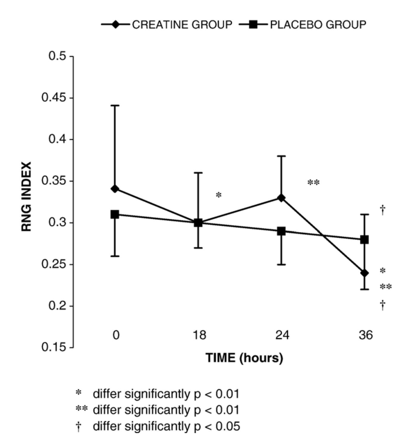 Subjective Fatigue: Creatine-supplemented subjects reported less fatigue by the end of the 24-hour period.