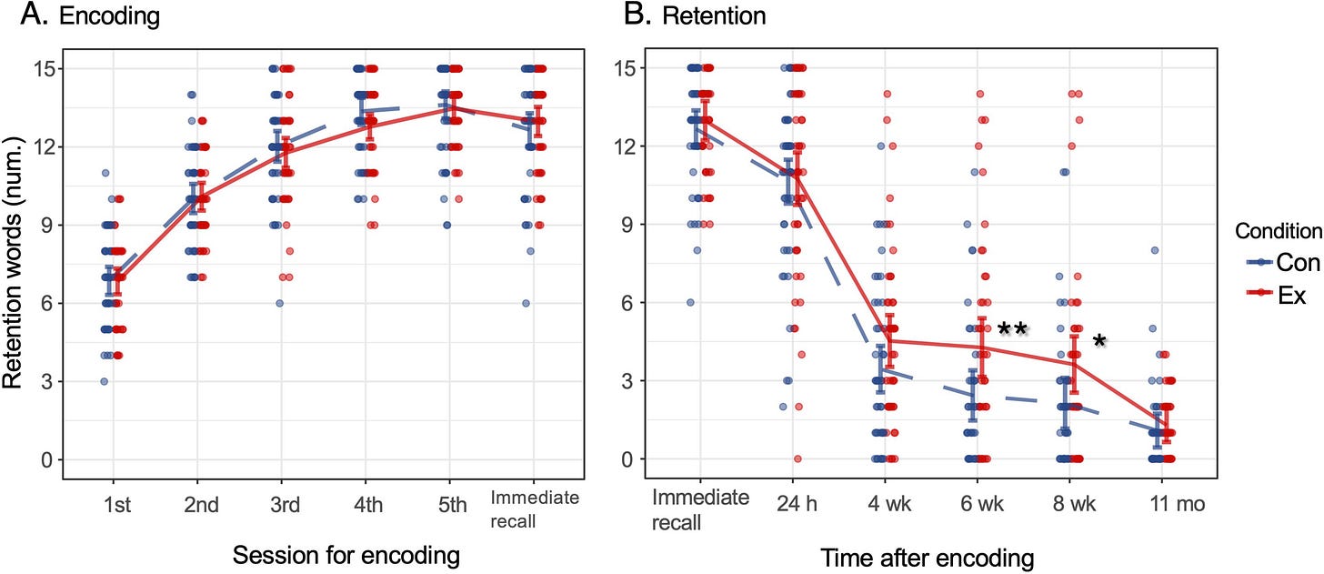 In another study, participants who performed just 20 minutes of low-intensity exercise before a learning task showed remarkable long-term benefits: